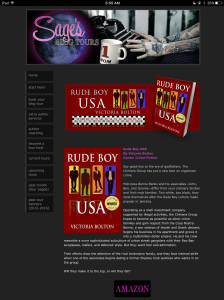 Thank you to Sage’s Blog Tours for hosting Rude Boy USA’s first tour. It will take place a couple of days in June and finish in July! The banner is awesome! As the book makes its appearances, I will give the bloggers a well-deserved shout out! Take a look at the page!