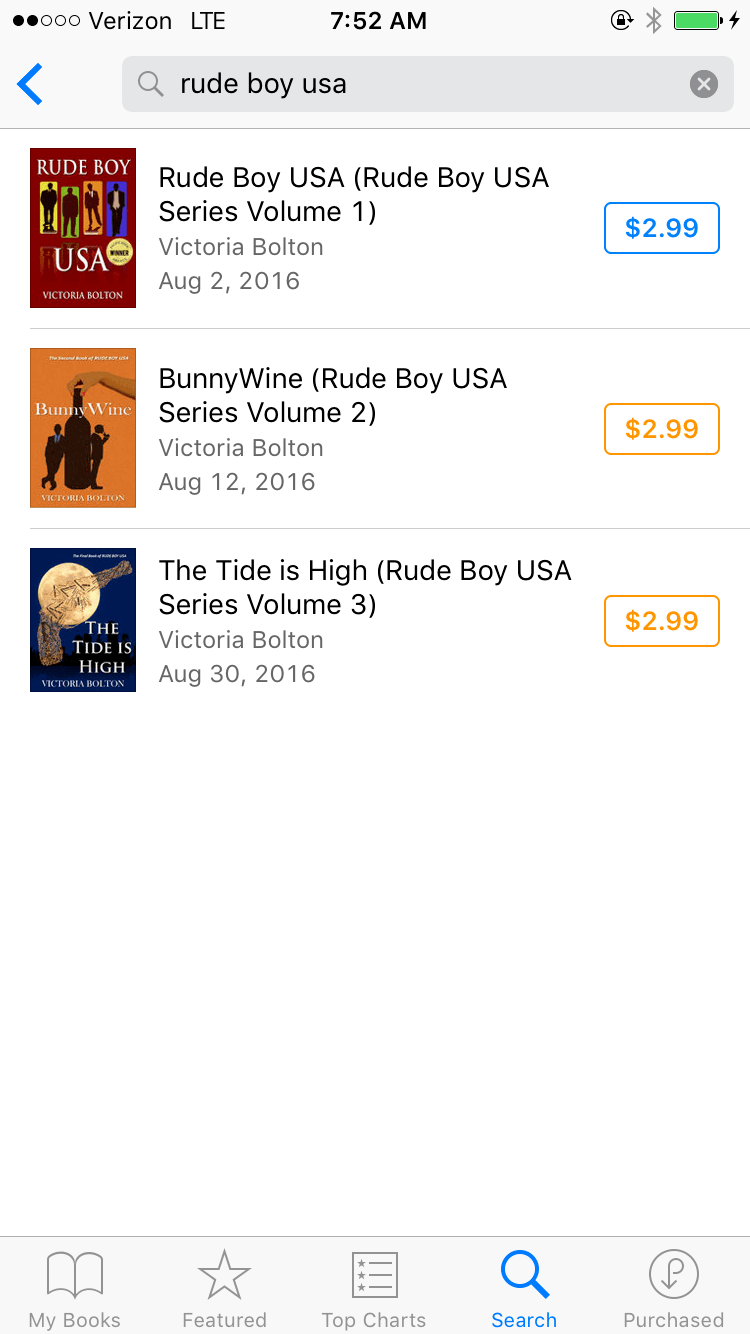The Tide is High, the third book in the Rude Boy USA series will be available on August 30th on iBooks, Kobo and Barnes and Noble. Amazon in September.