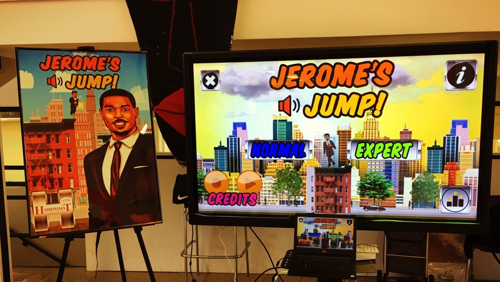 On February 16th, Jerome’s Jump Demo previewed at Woodlands High School in Westchester County, NY. Students lent their voice and skill to a new concept of gaming which uses sound to operate!
